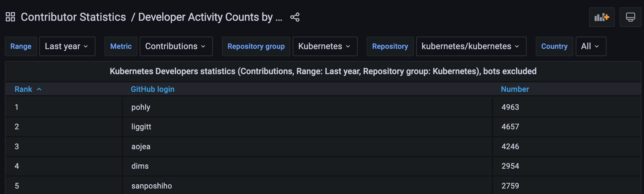 昨年のようにDevStatsを確認してみました。今年はコントリビュートの総量で5位でした。(ref)